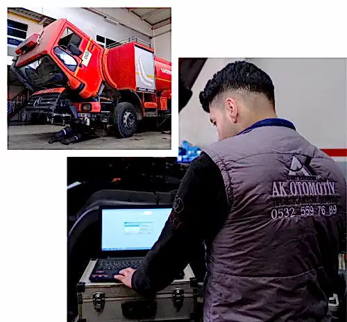 Ak Otomotiv'in Tır ve Kamyon Servisi, müşteri memnuniyetine odaklanmış hizmet anlayışıyla öne çıkıyor. Kesintisiz destek için destek hattına her zaman ulaşabilirsiniz.